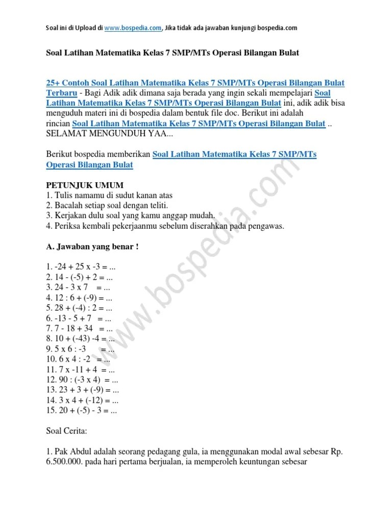 Contoh soal cerita operasi bilangan bulat dan bilangan pecahan. Contoh soal dan pembahasan operasi hitung campuran bilangan bulat kelas . Materi soal cerita bilangan bulat dan pembahasan dibagi dalam dua bagian (part 1 dan part 2) yang akan di upload segera. Contoh soal operasi bilangan berpangkat kelas 7 kumpulan soal pelajaran 8. Soal cerita perkalian dan pembagian bilangan bulat.